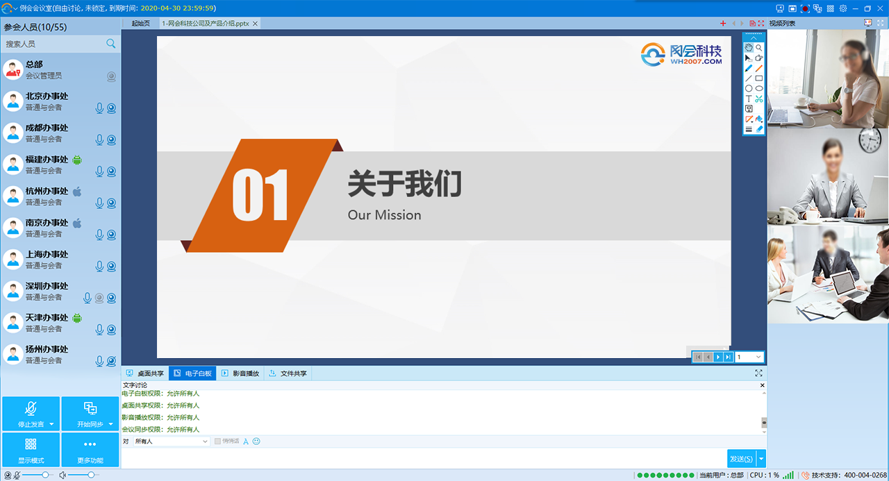 網(wǎng)會科技是中國領(lǐng)先的遠程視頻會議軟件以及視頻會議系統(tǒng)、網(wǎng)絡視頻會議全面應用解決方案的供應商.產(chǎn)品涵蓋軟硬件視頻會議系統(tǒng)、視頻智能錄播系統(tǒng)等 請撥400-004-0268。
